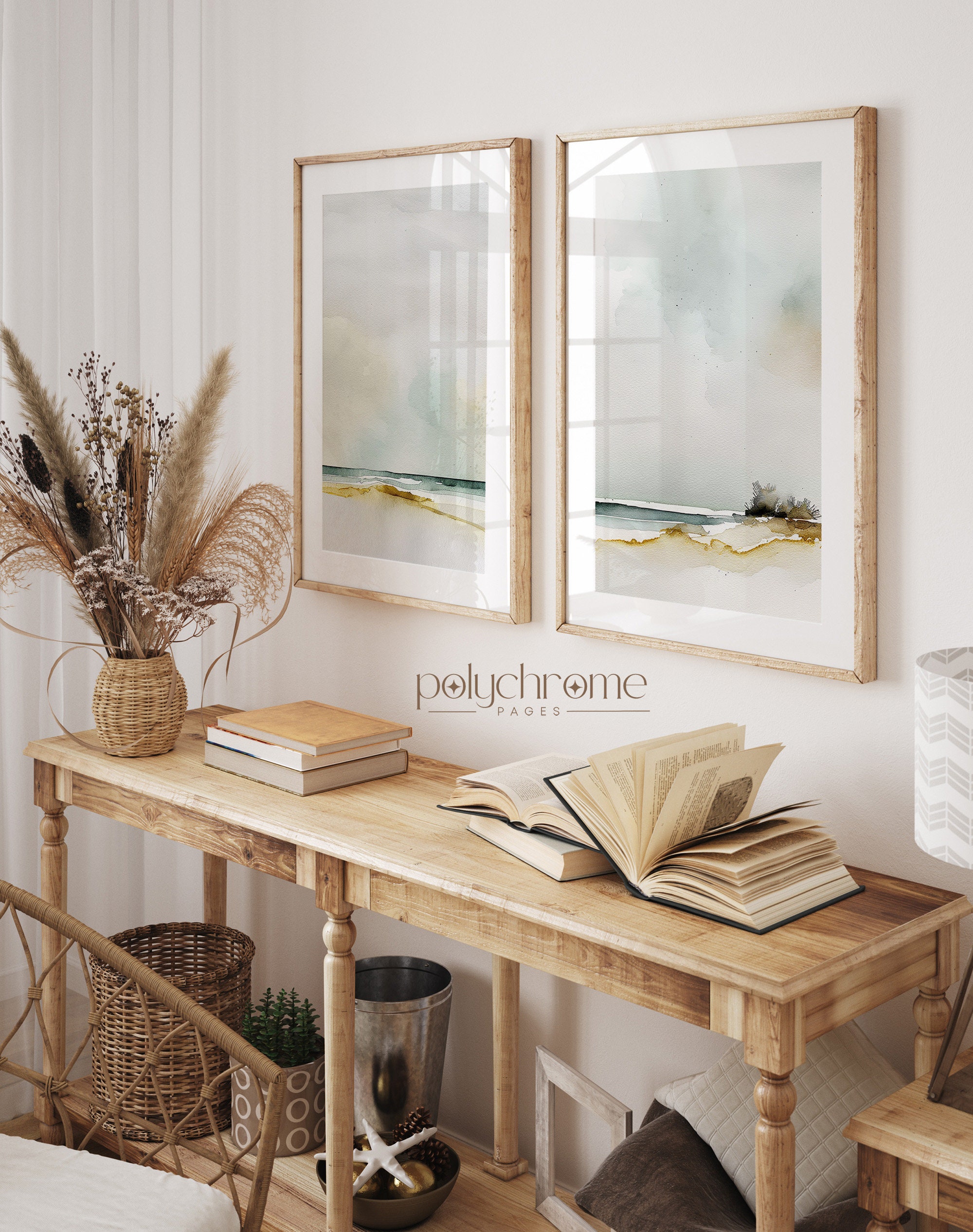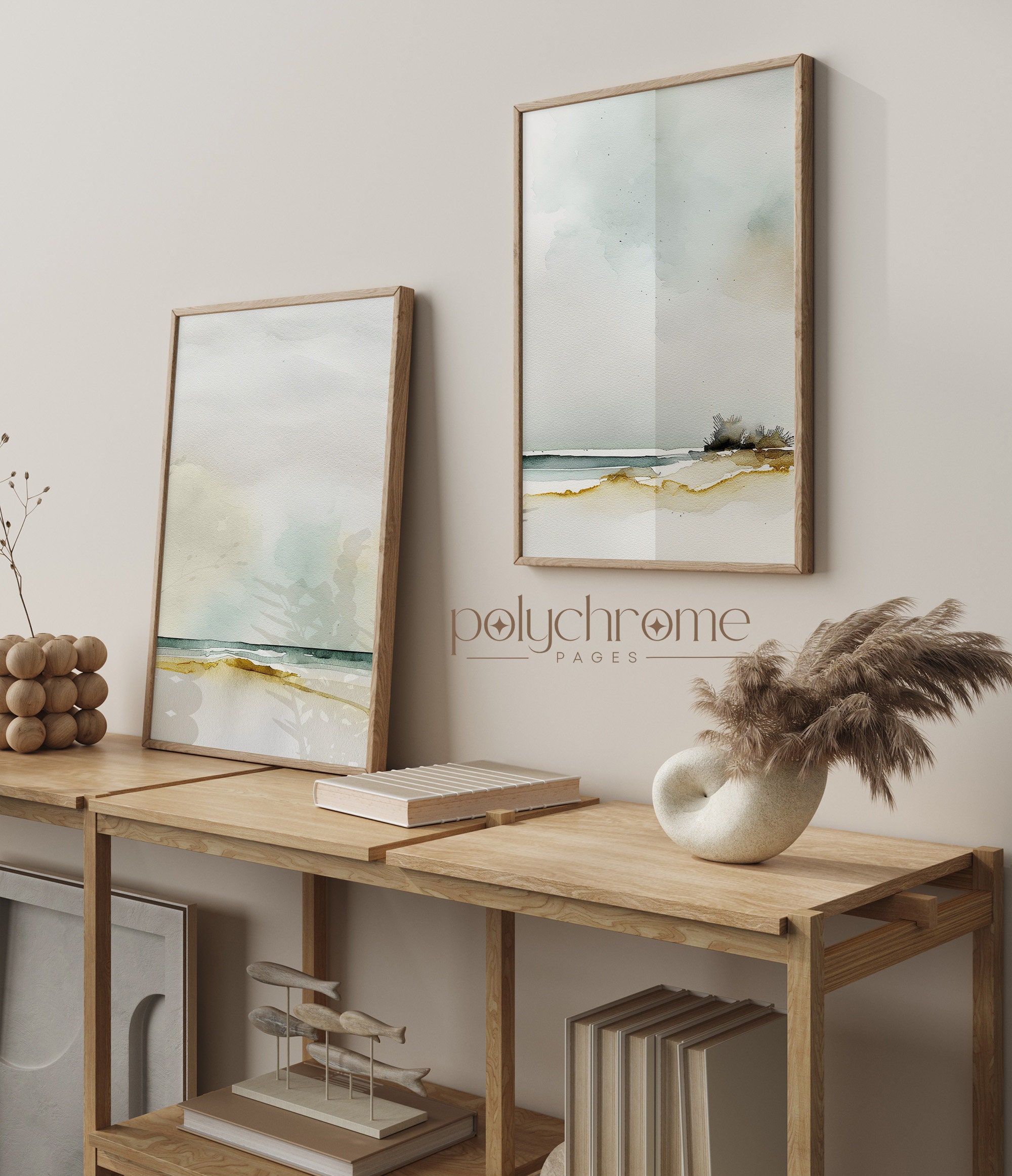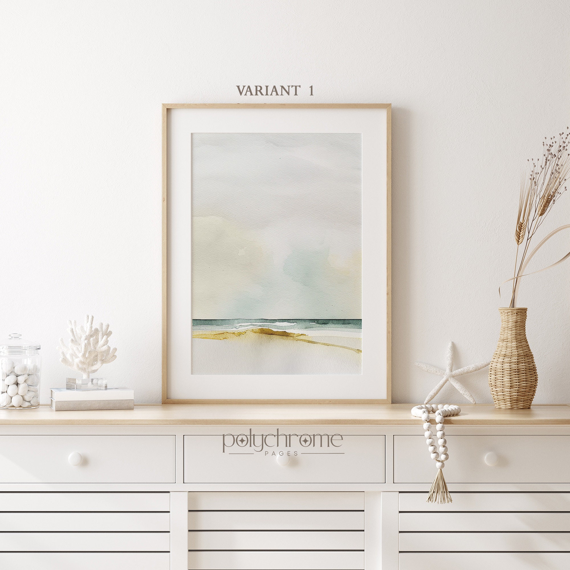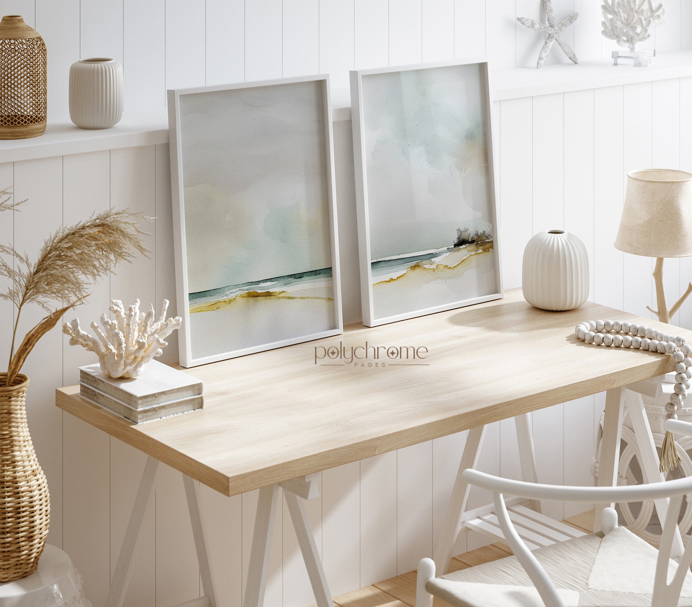 These abstract beach landscapes capture the serene beauty of the coastline with soft, muted tones of sandy beige, ocean blue, and seafoam. The dreamy, painterly style brings to mind calm summer mornings by the water. Perfect for a master bedroom, coastal bathroom, or Hamptons-inspired living space. A lovely choice for anyone who appreciates understated, tranquil beach house decor.