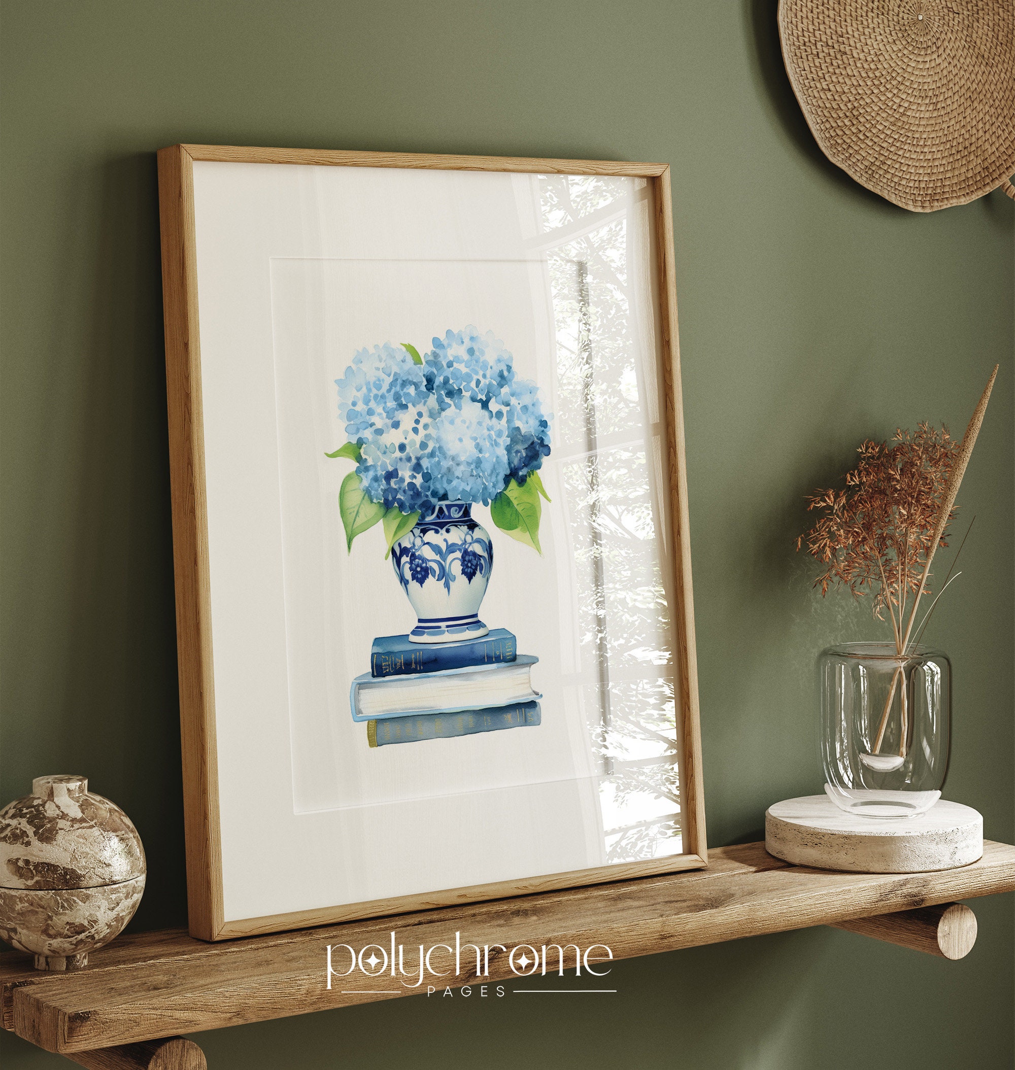 Blue Hydrangeas in Chinoiserie on Books