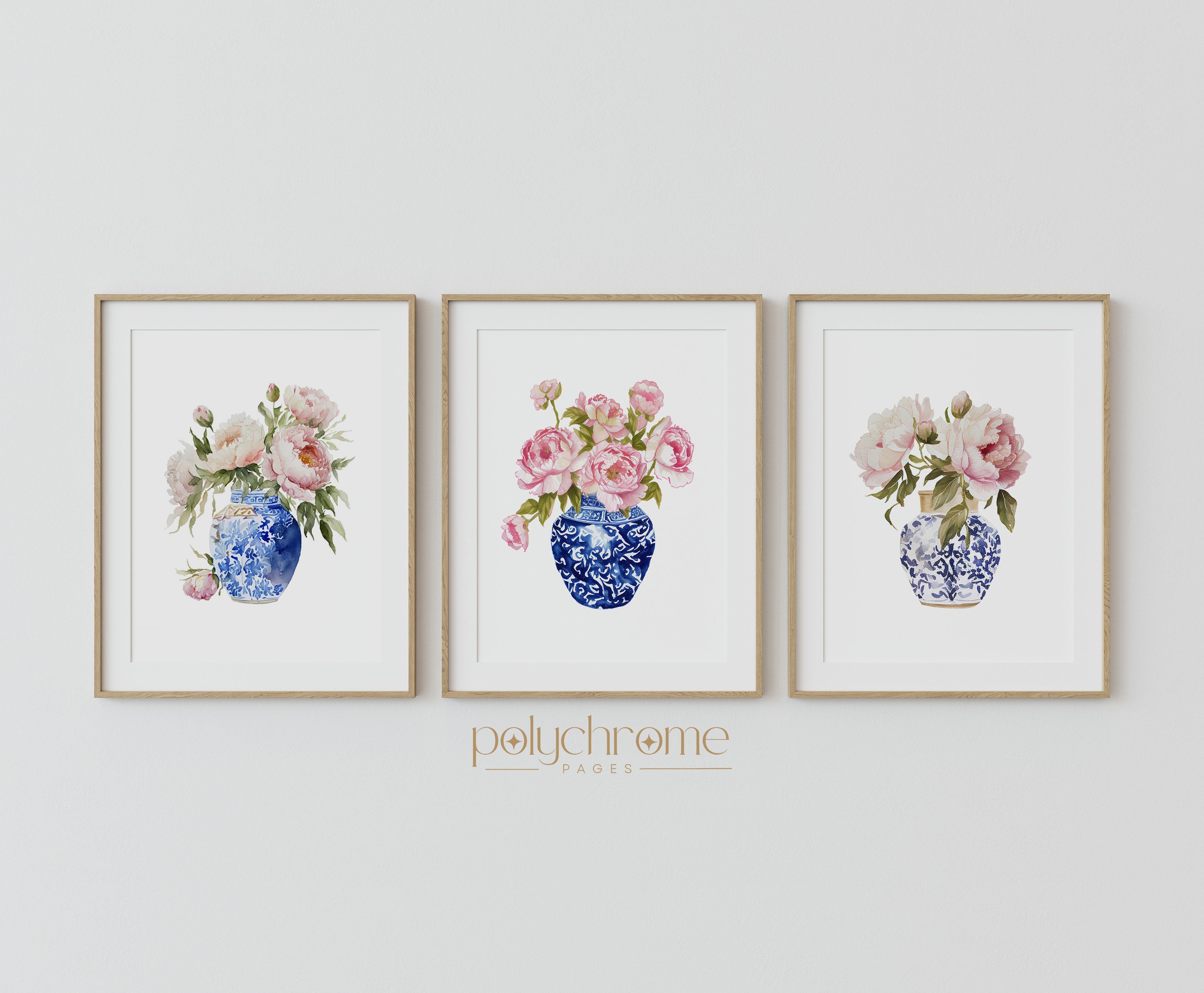 Pink Peonies in Chinoiserie