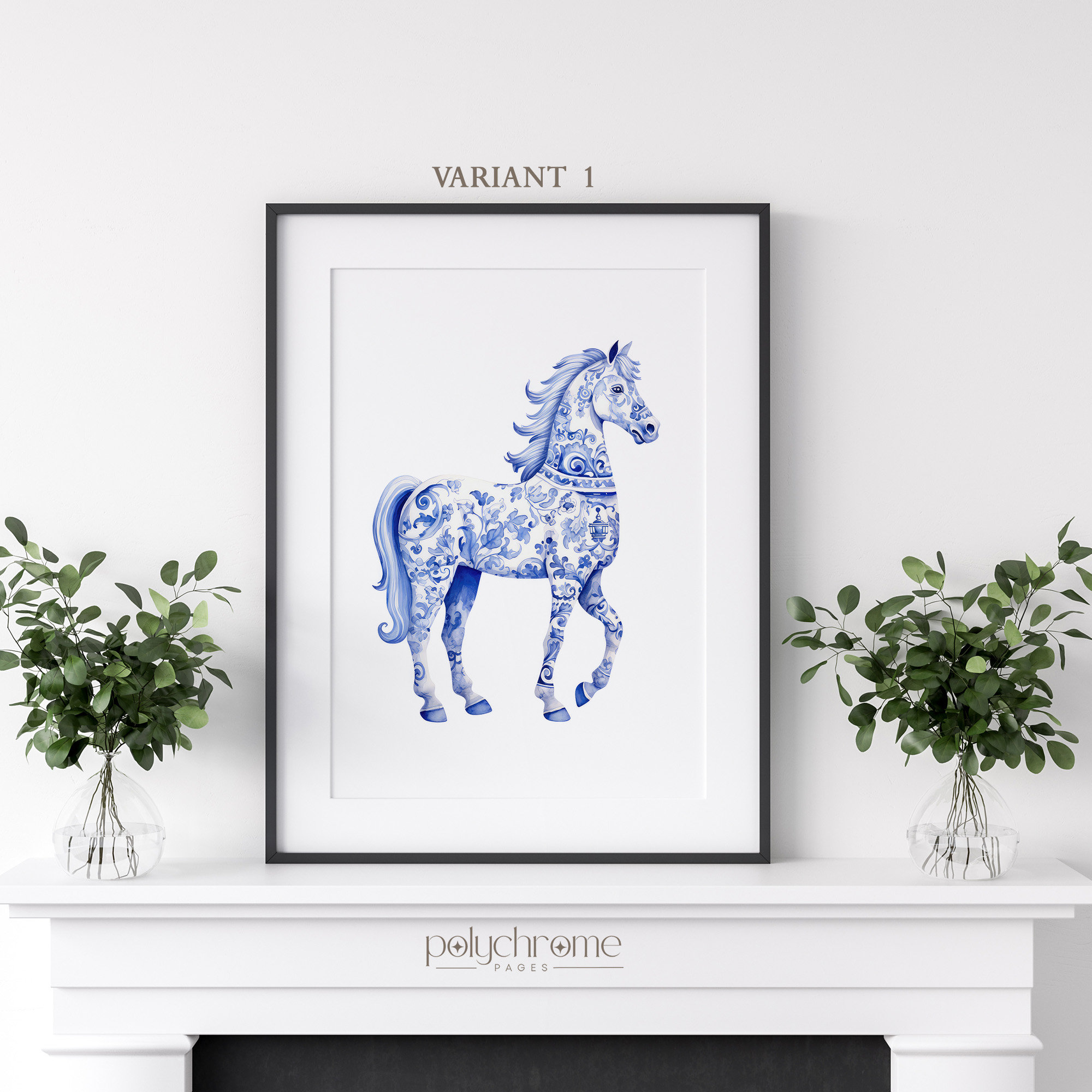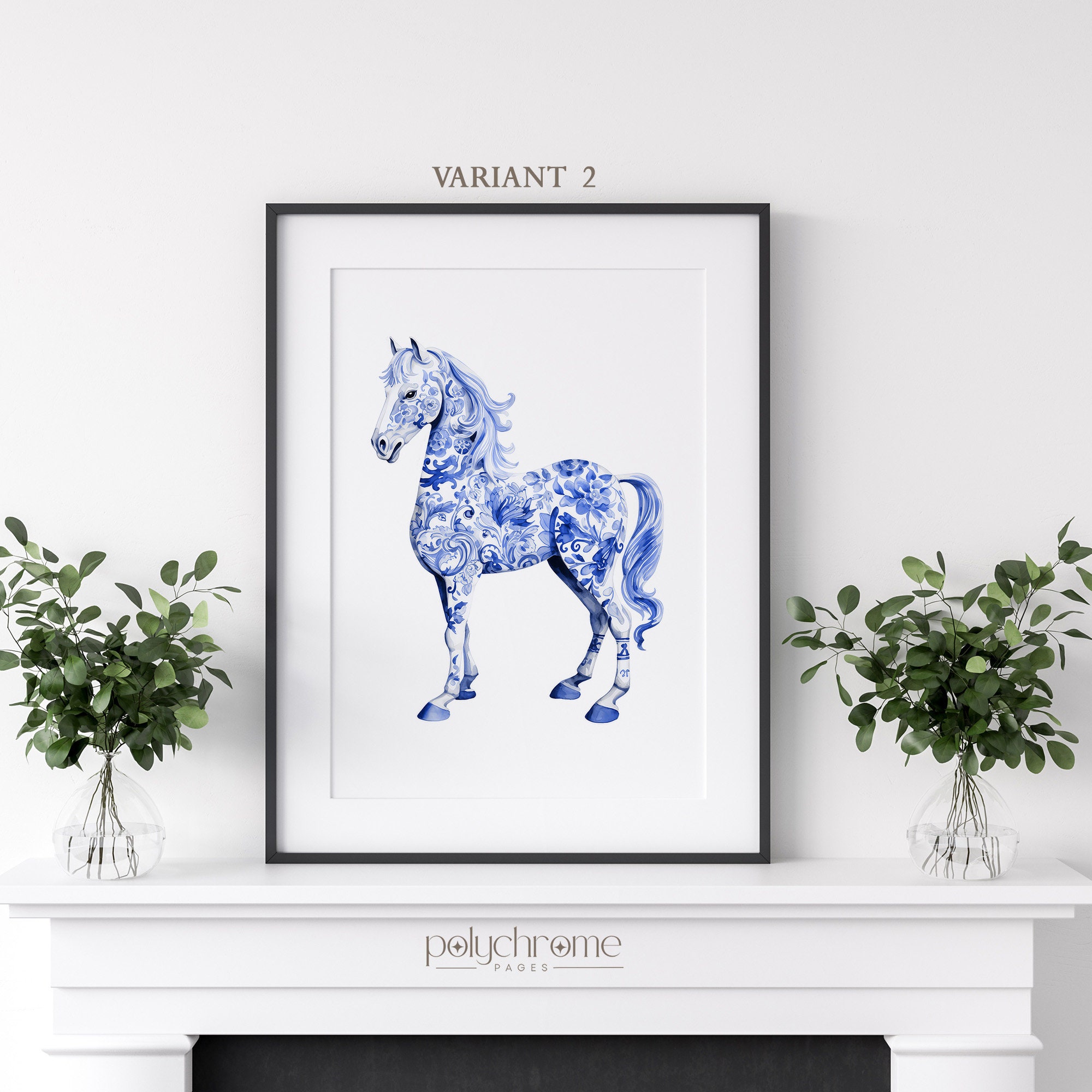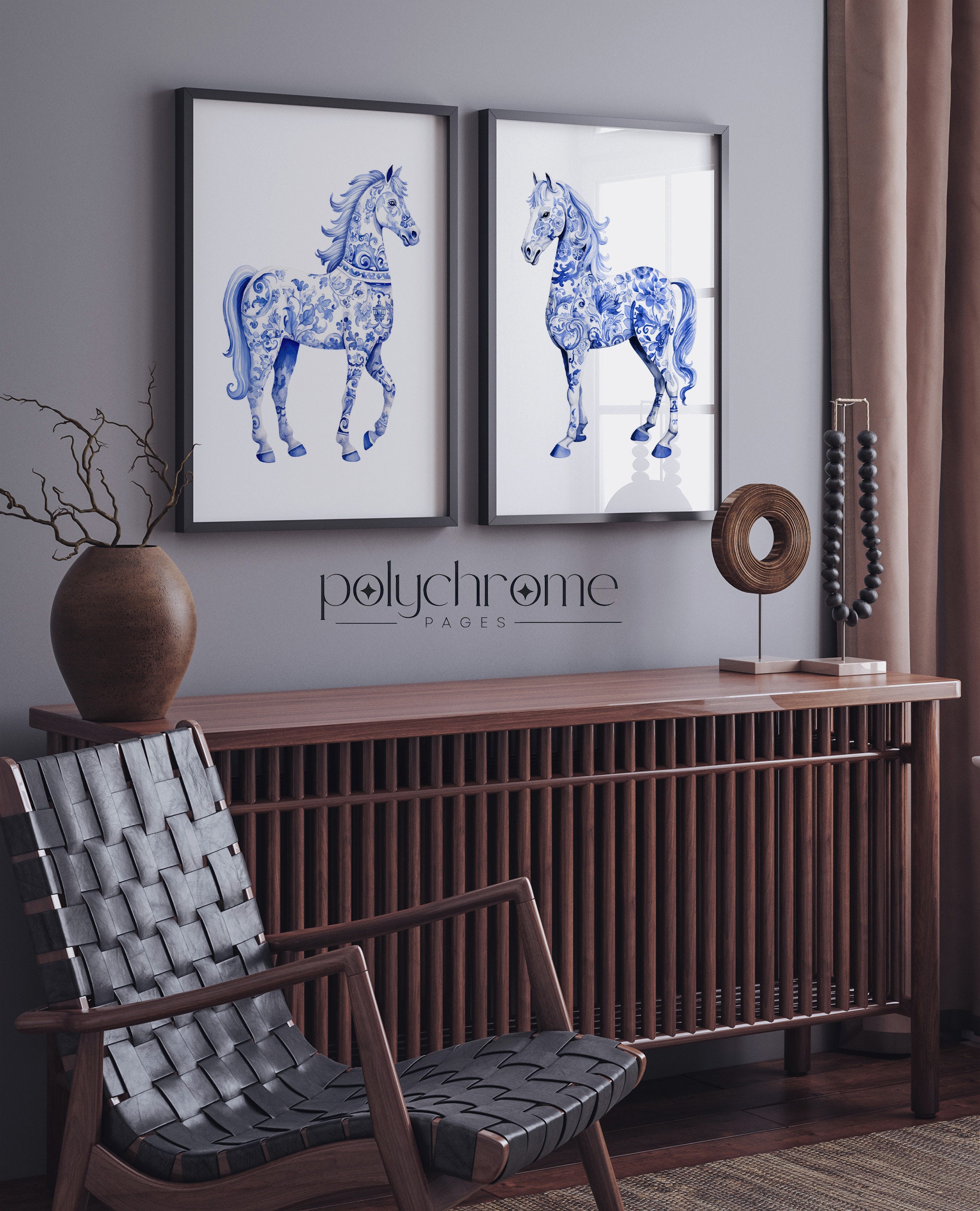 This elegant pair captures decorative horse figurines in classic blue and white chinoiserie style, with delicate floral and botanical patterns. The traditional design brings a refined yet approachable feel that works beautifully in entryways, living rooms, or home offices. Perfect for lovers of grandmillennial aesthetics, equestrian themes, or anyone drawn to timeless Hamptons-inspired interiors.