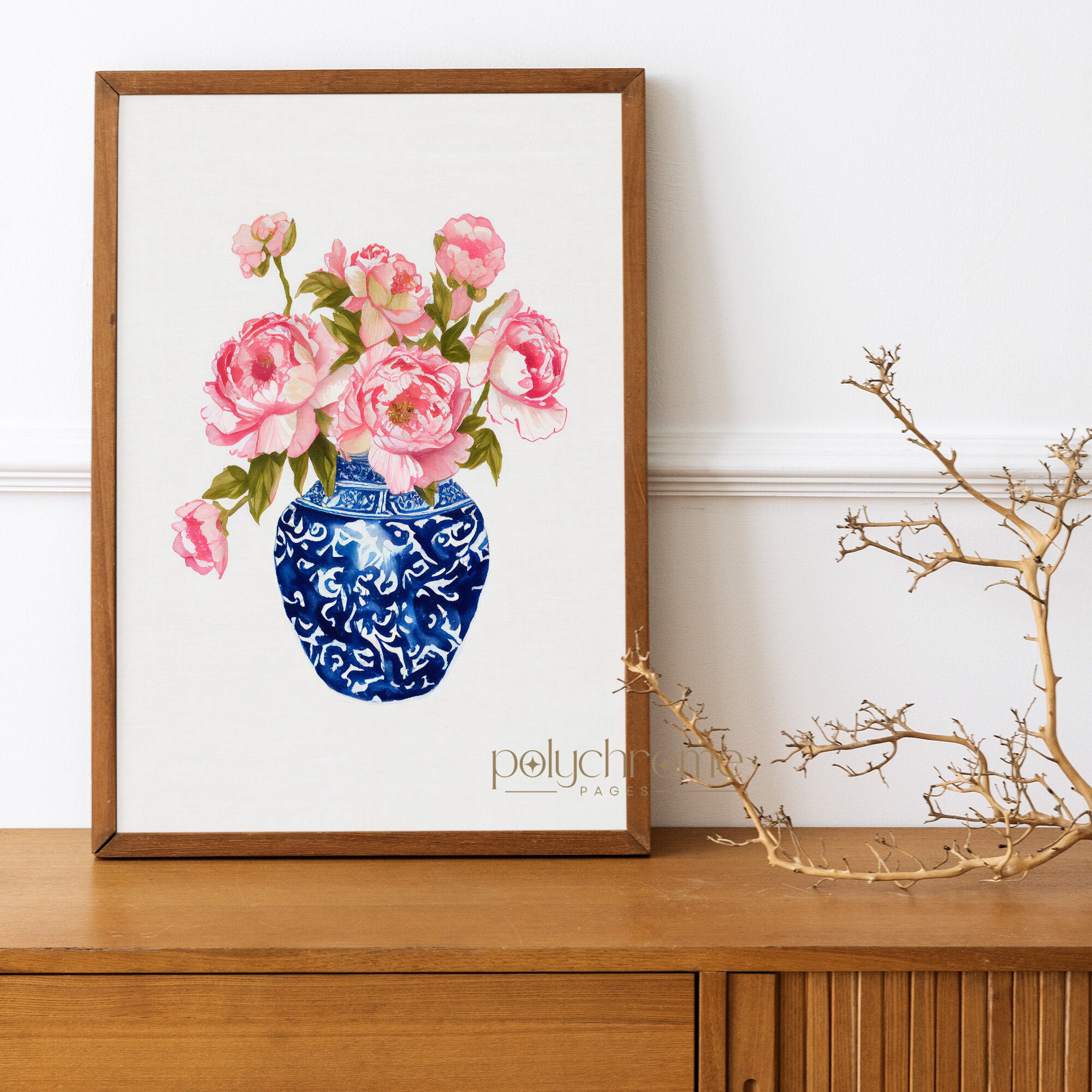 >>> IMPORTANT<<< Read BELOW before purchase... -------------------------------------------------- Elevate your room and office with my fine art quality posters crafted on thick matte paper. These stunning prints are designed to add a touch of wonder to any environment. Fine art print details: • Paper thickness: 10.3 mil • Paper weight: 189 g/m² • Paper sourced from Japan Please note that this product is made especially for you upon ordering, resulting in a slightly longer delivery time. By producing items on demand instead of in bulk, you and me contribute to reducing overproduction. Thank you for making thoughtful purchasing decisions that help promote sustainability! -------------------------------------------------- 📢 >>> IMPORTANT<<< Keep in mind this listing is for paper print only, frames are not included! 📢 -------------------------------------------------- Introducing my new creation "Watercolor Peonies in Chinoiserie" fine art print, a delightful fusion of blooming flowers and timeless chinoiserie charm. Immerse yourself in a symphony of delicate brushstrokes and vibrant hues as you gaze upon this mesmerizing masterpiece. Each brushstroke whispers tales of nature's bounty, while the chinoiserie motif dances with an air of mystique and sophistication. The velvety petals unfurl before your eyes, their soft blushes and whispers of pink gracefully blooming into a vision of ethereal beauty. The chinoiserie elements intertwine with the floral splendor, creating an exquisite harmony that transports you to a realm of refined elegance. Perfectly suited for any wall longing for a touch of refinement, this flowers in chinoiserie watercolor wall art will transform your space into a sanctuary of timeless allure. Hang it in your living room, bedroom, or even your study, and let the delicately painted peonies breathe life and charm into your surroundings. Crafted with utmost care and printed on high-quality mat paper, this fine art print ensures long-lasting beauty that will captivate your senses for years to come. The exquisite details, vibrant colors, and impeccable craftsmanship make it a true collector's piece, destined to be treasured and admired. Embrace the allure of the East and the delicate charm of blooming peonies with my "Watercolor Peonies in Chinoiserie" fine art print. Let its beauty transcend time and space, bringing the majesty of nature and the allure of chinoiserie into your home. Unveil a world where floral elegance meets exotic enchantment, and let this exquisite piece of art become the centerpiece of your decor. Indulge in the enchanting allure of "Watercolor Peonies in Chinoiserie," and prepare to be transported to a realm of timeless beauty and artistic wonder. Add a touch of sophistication to your space and let the floral symphony of peonies and chinoiserie dance upon your walls. The "Watercolor Peonies in Chinoiserie" fine art print has a perfect match, featured in the last photo of this listing. It's available as a separate listing in my store. Imagine the beauty of these two pieces displayed together, creating a harmonious blend of floral elegance and chinoiserie allure. Complete your collection with the matching artwork and let your walls come alive with refined beauty. Visit my store now and discover the perfect duo for your home decor. -------------------------------------------------- My name is Emilia and I specialize in designing art tailored to Your preferences. In Polychrome Pages Art Print store I've created collection featuring a range of styles, including Bohemian, Mid Century, Modern, Minimalist, and more, providing excellent options for enhancing Your home decor or finding the perfect gift for Your loved ones. With my Etsy store, You can easily purchase the fine art prints and have them conveniently shipped to Your home. Once hung on your walls, these art prints will transform Your living space.