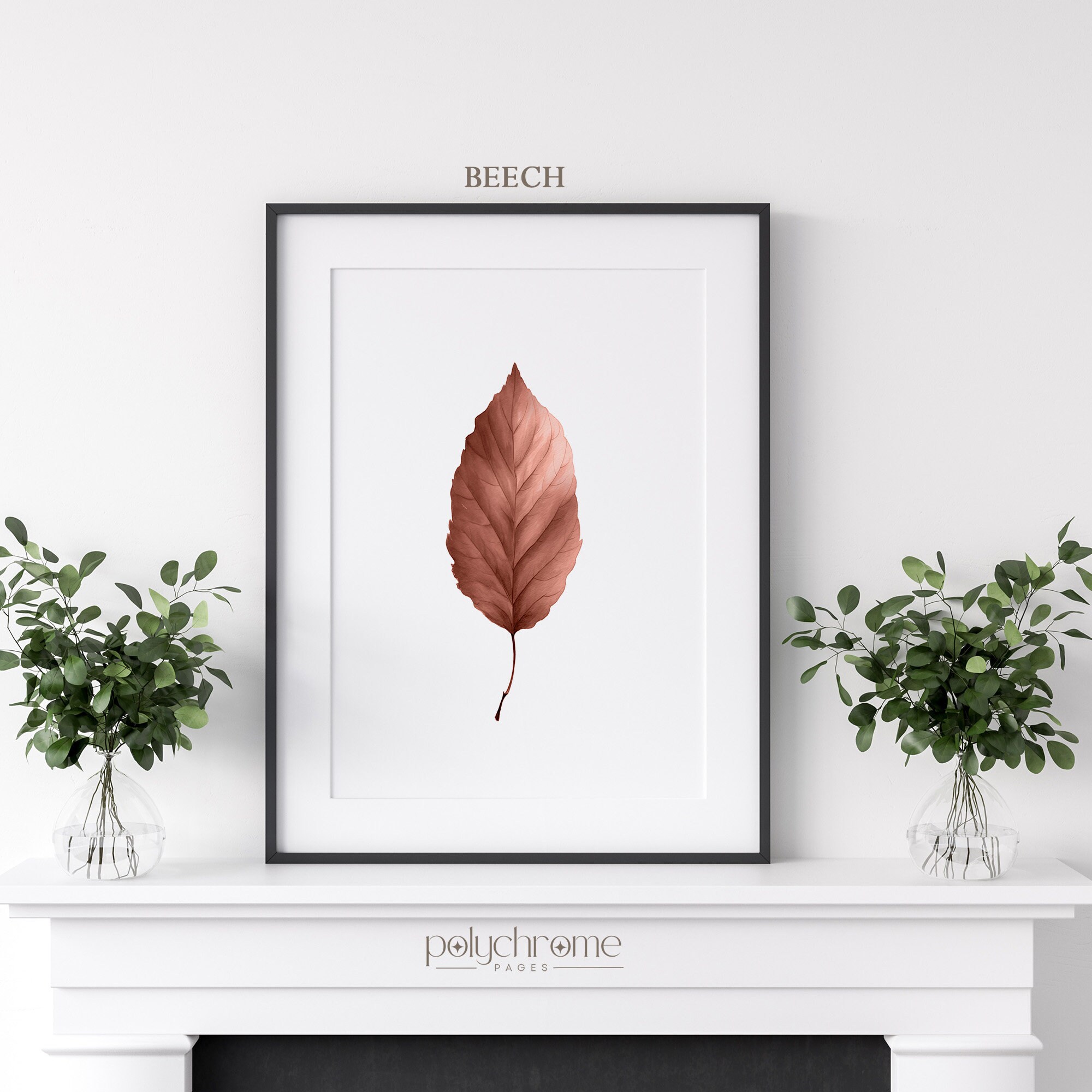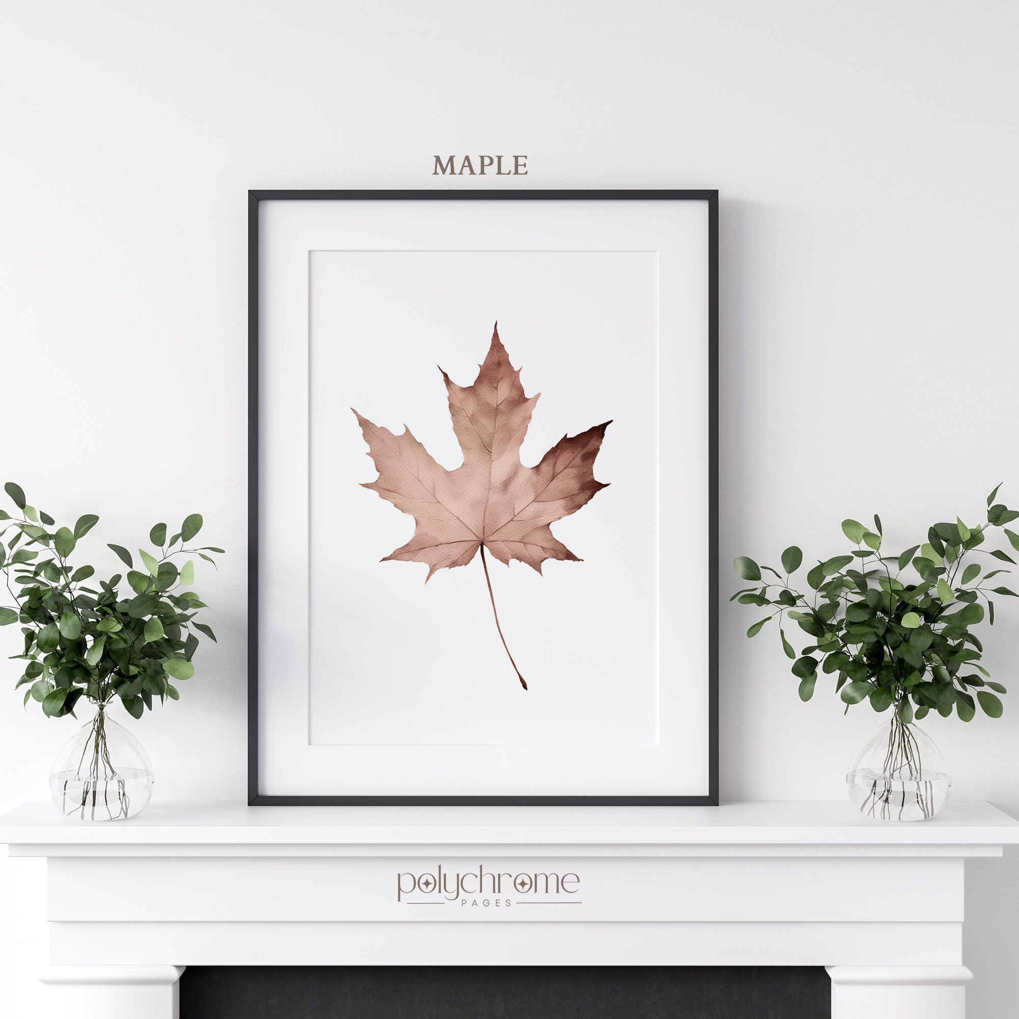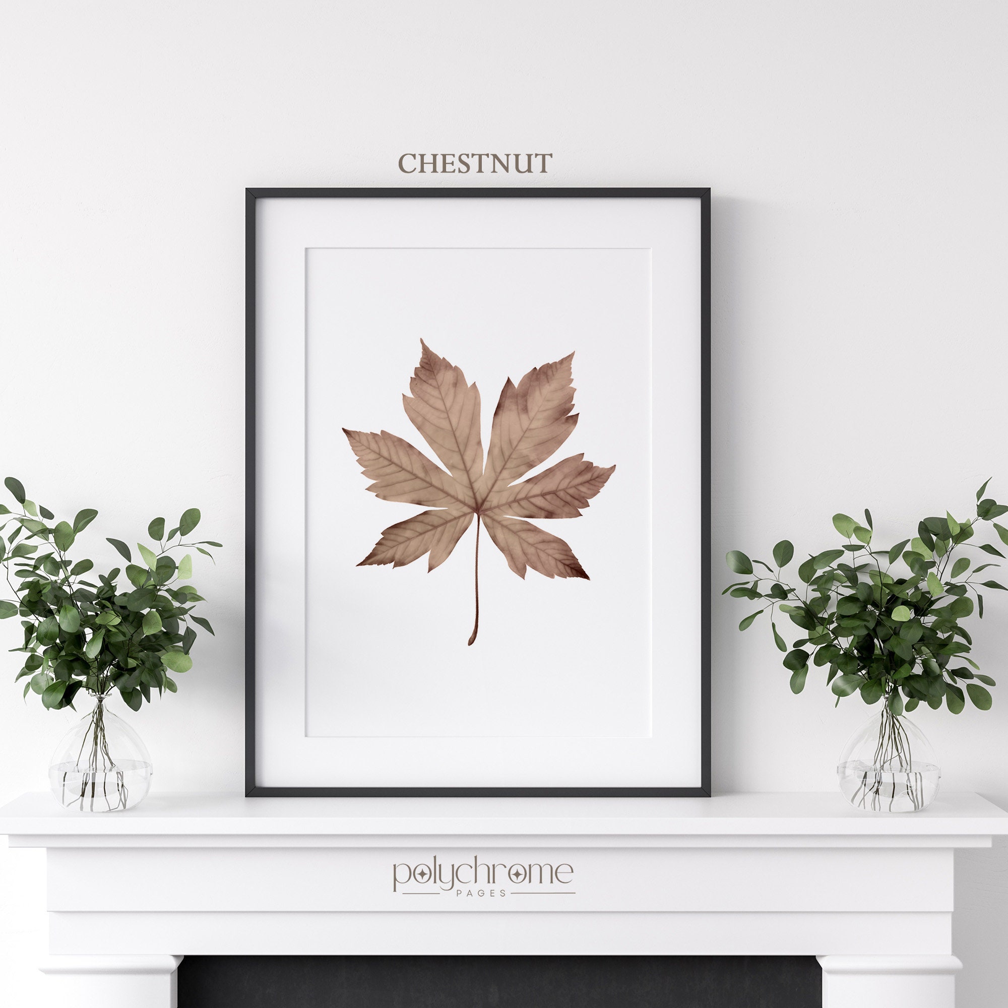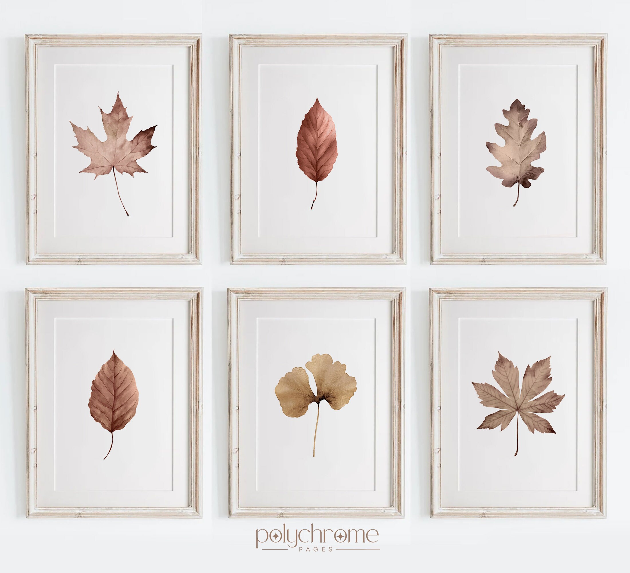 A warm collection of autumn leaves featuring maple, oak, beech, elm, ginkgo, and chestnut in rich shades of golden yellow, burnt orange, and earthy brown. These botanical pieces bring a cozy, seasonal feel that works beautifully in farmhouse kitchens, rustic living rooms, or entryways ready for fall. Lovely for anyone who enjoys cottagecore style or wants to celebrate the changing seasons with nature-inspired art.