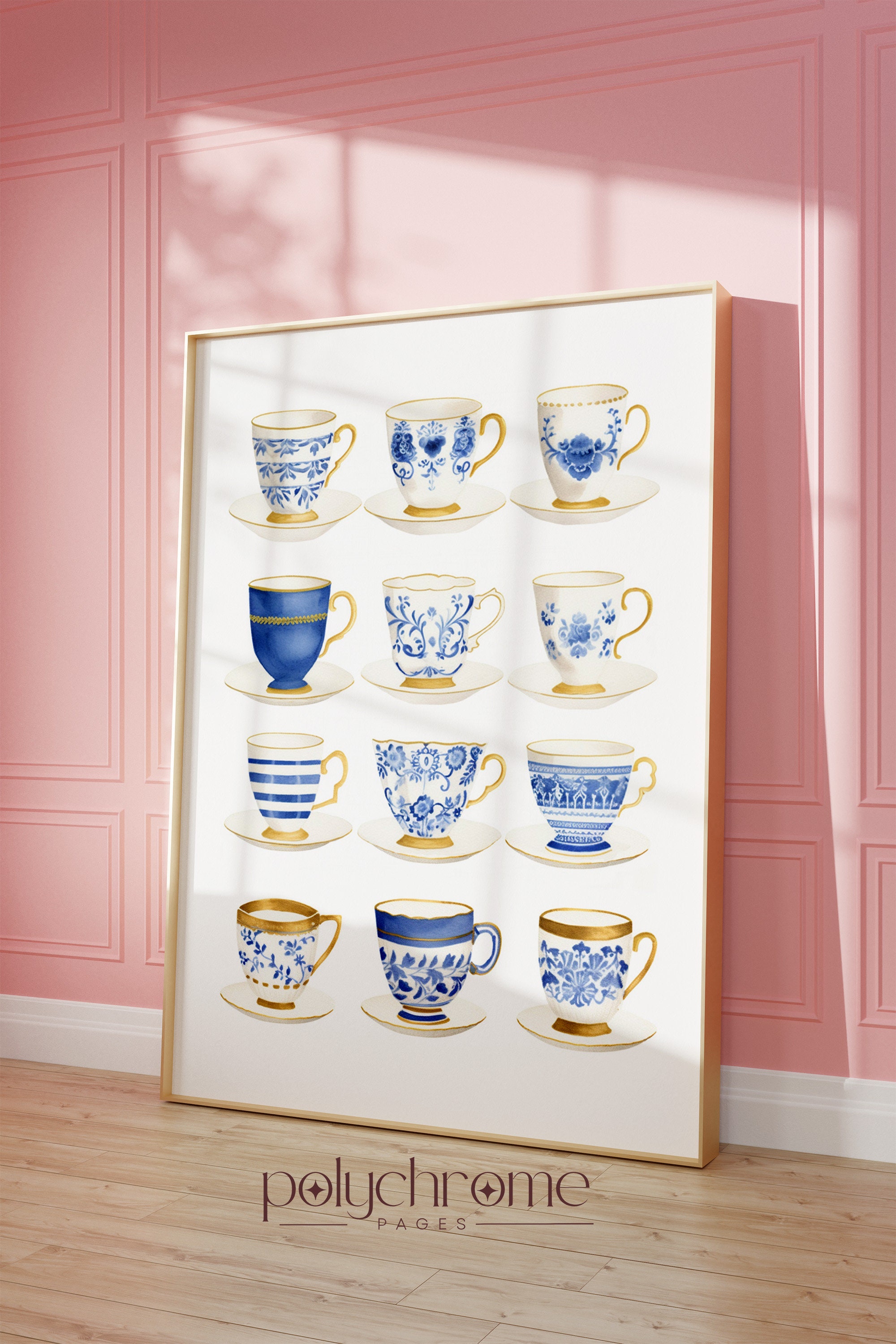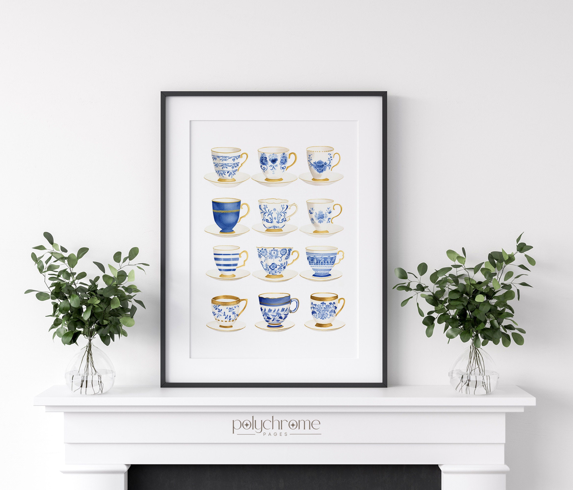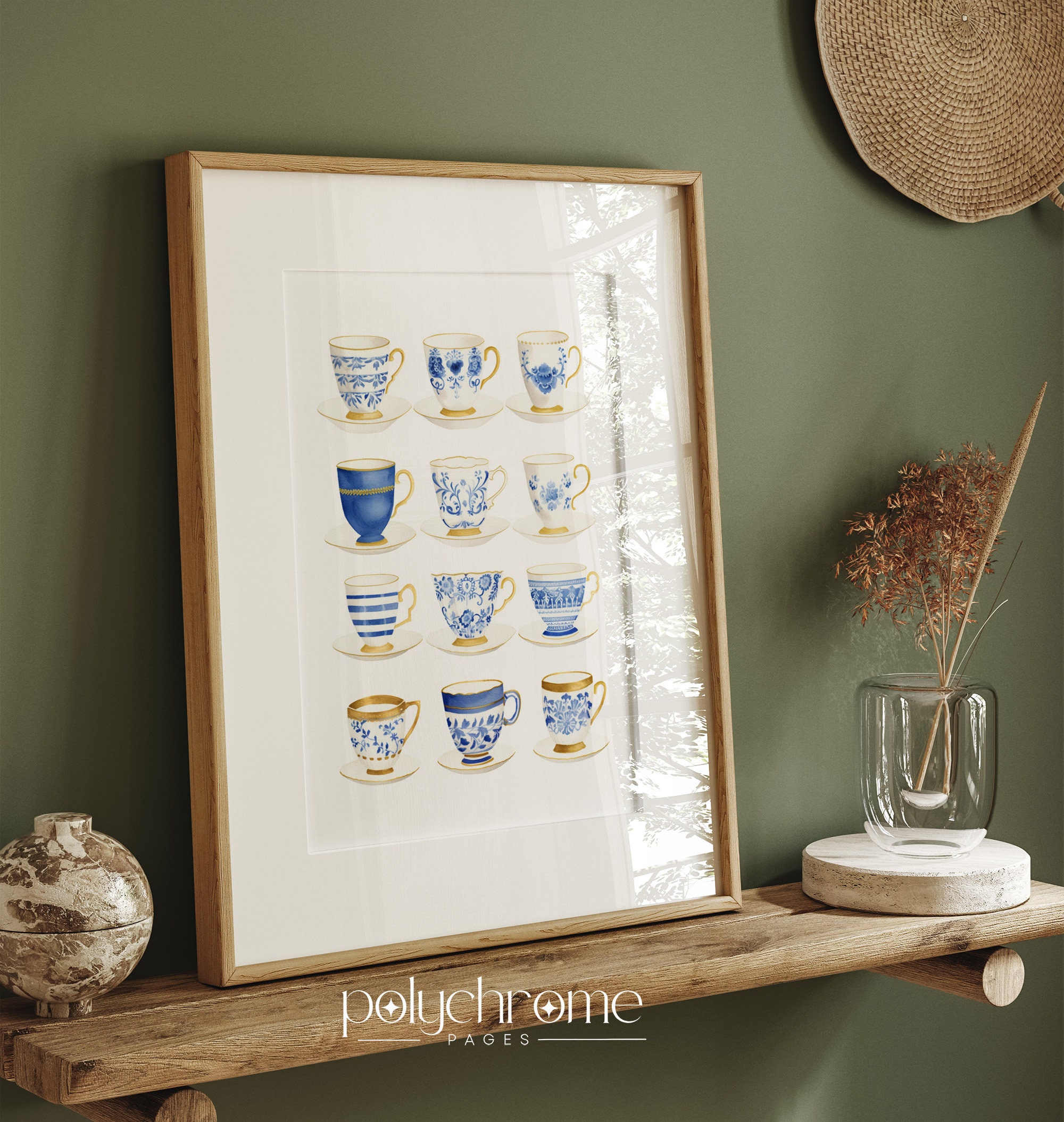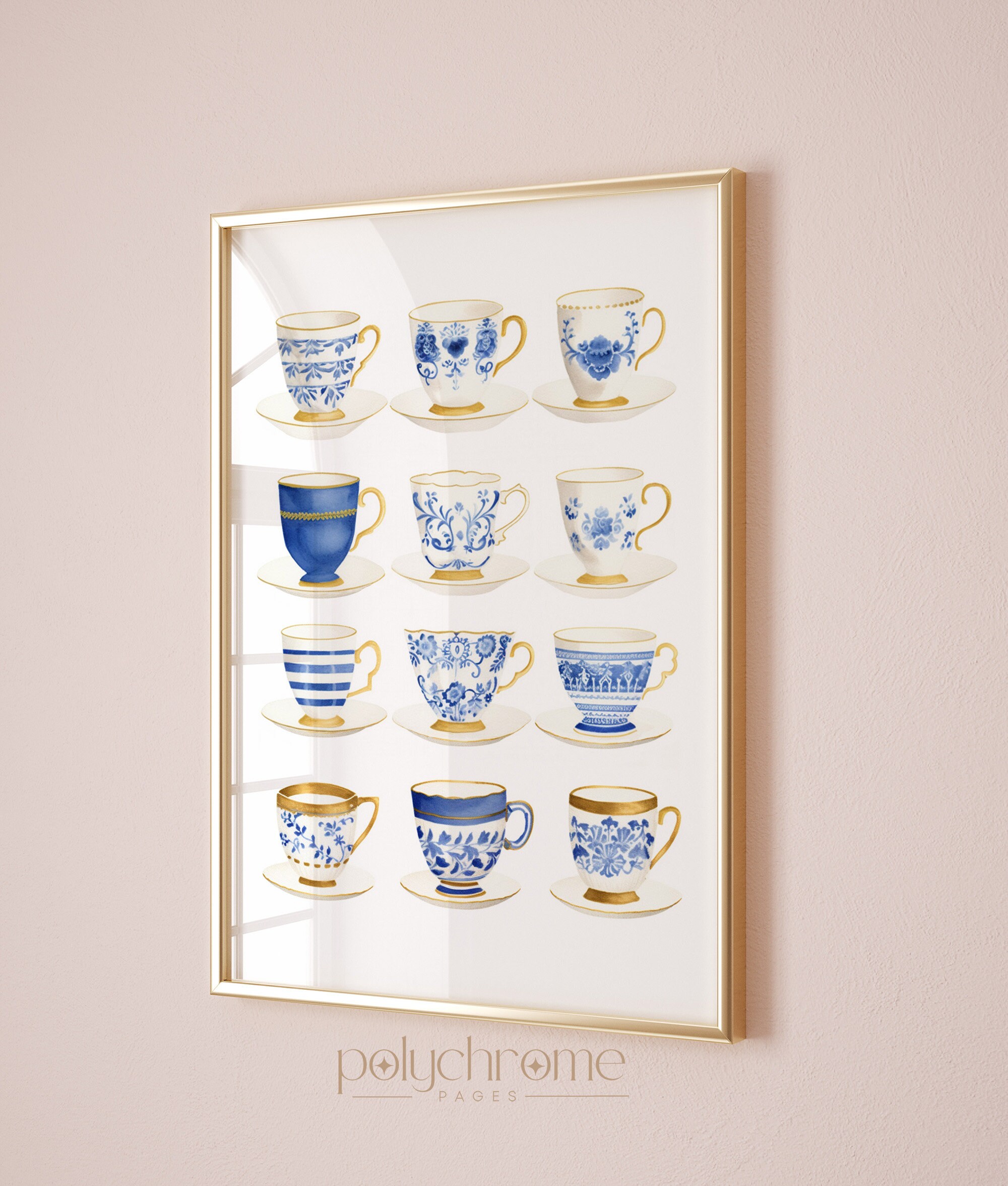 This collection of twelve Japanese tea cups showcases delicate blue and white china patterns, from classic florals to intricate geometric designs. The soft cobalt tones and traditional motifs bring a gentle, collected-over-time feel that works beautifully in a dining room, powder room, or reading nook. Ideal for anyone who loves grandmillennial style, Chinoiserie details, or simply appreciates the quiet elegance of blue and white ceramics.