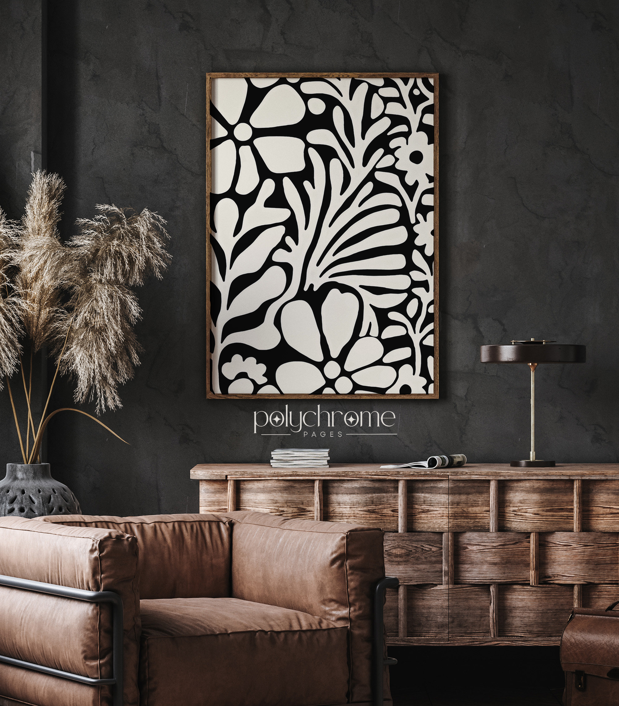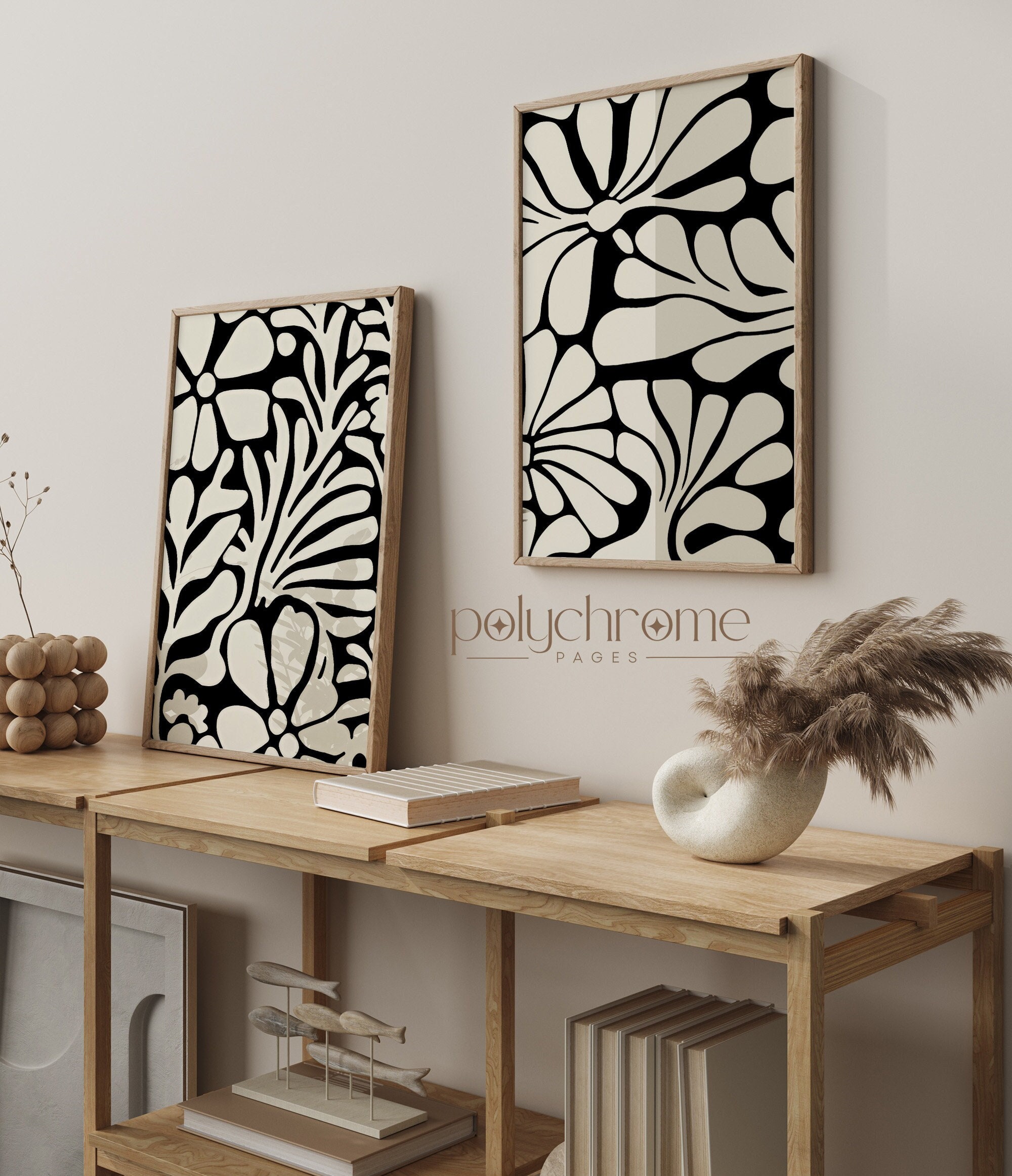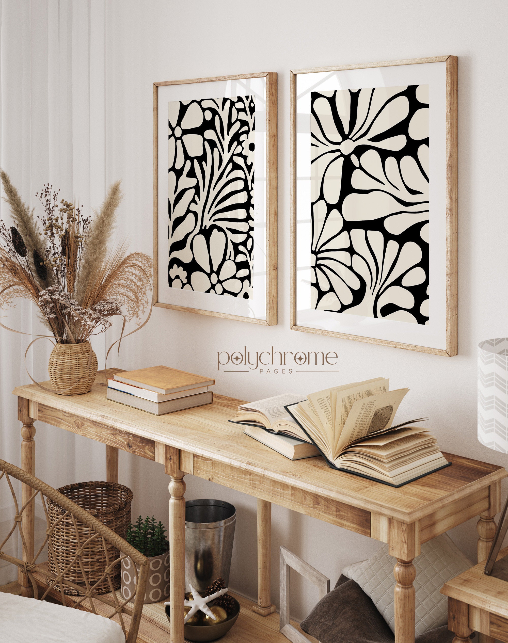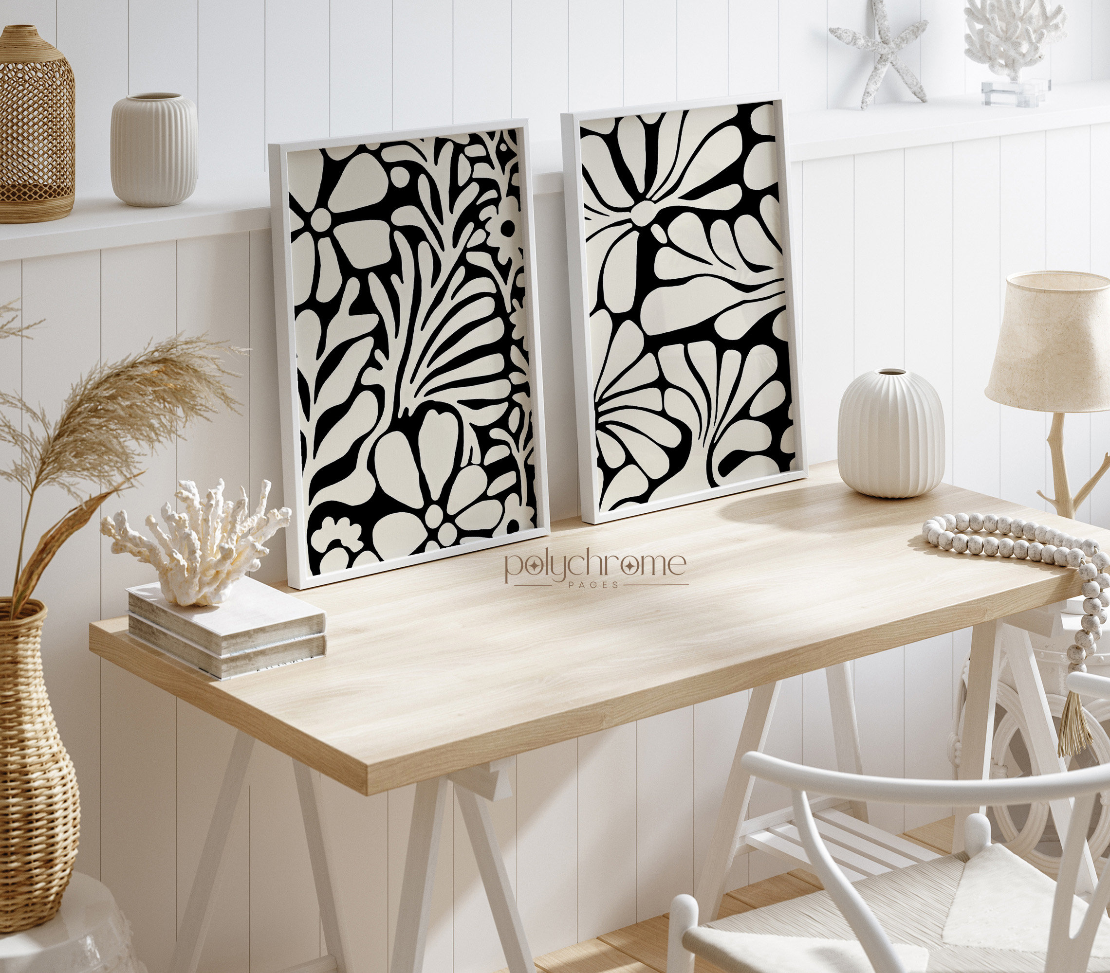 This striking pair of botanical illustrations consists of delicate flower stems rendered in bold black brushstrokes against a clean white background. The minimal, graphic style brings a calm, contemporary feel that works beautifully in living rooms, entryways, or bedrooms with neutral decor. A great choice for anyone who loves Scandinavian-inspired interiors or wants to add subtle artistic interest without overwhelming a space.