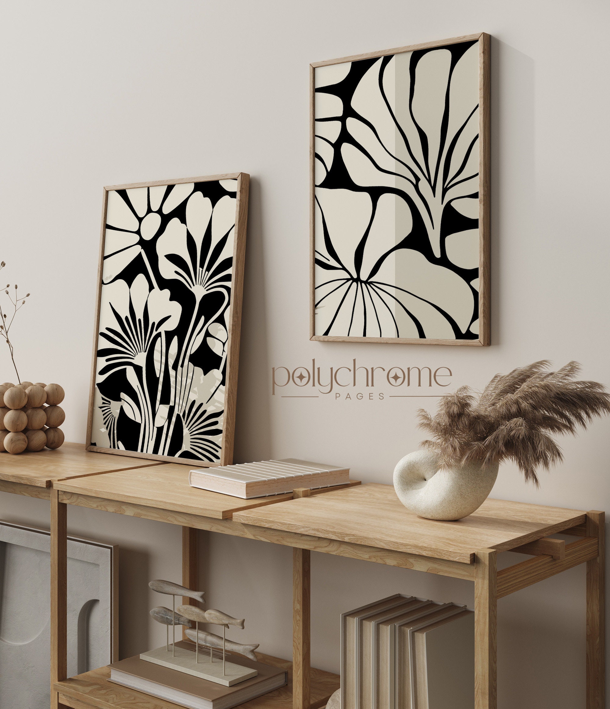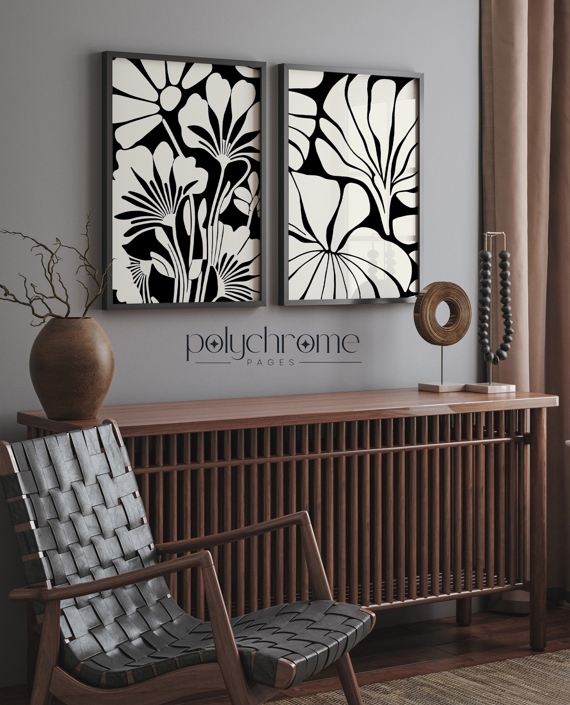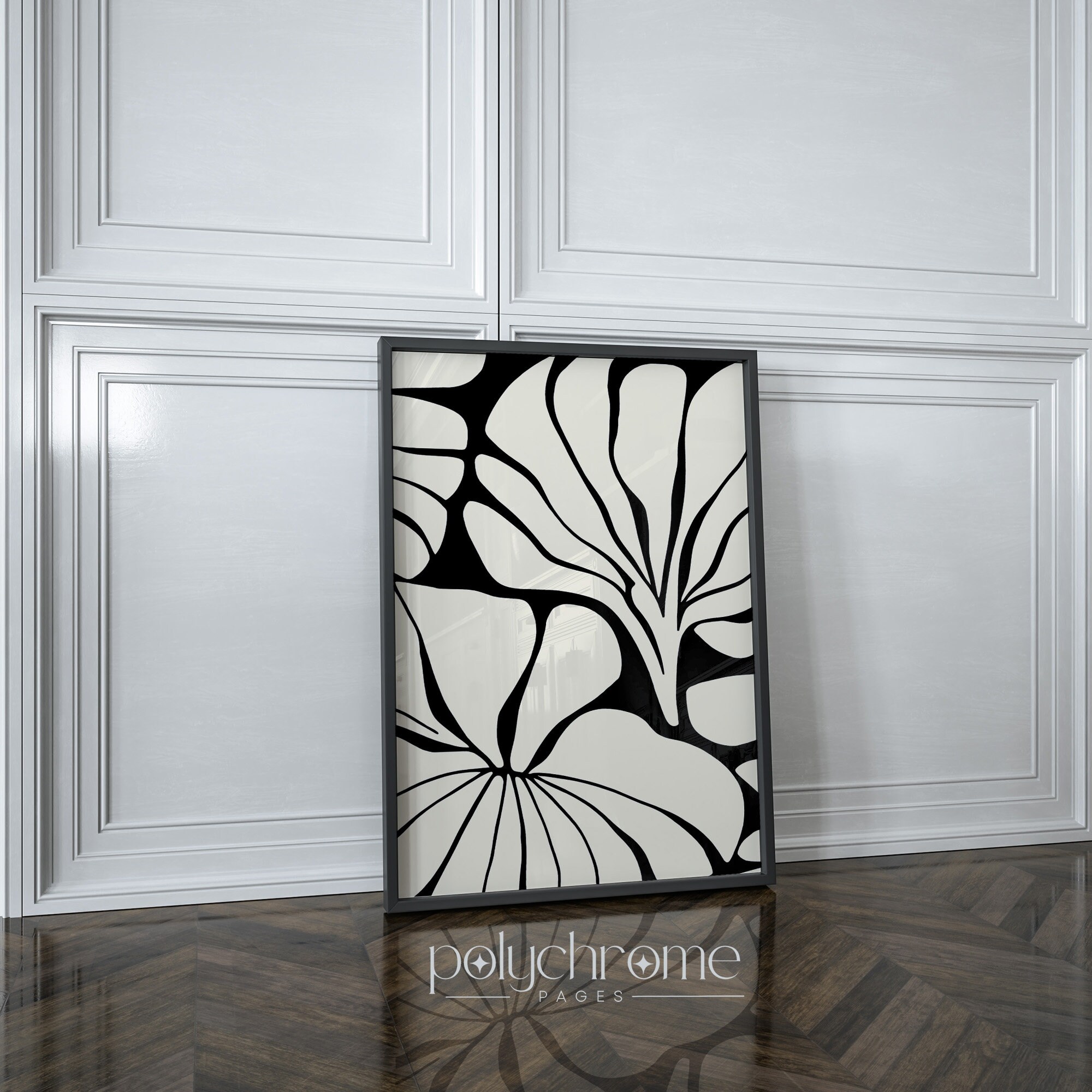 This minimalist black and white botanical illustration brings a calm, understated elegance to any space. The simple flower forms and clean lines work beautifully in living rooms, entryways, or bedrooms with a Scandinavian or neutral aesthetic. A lovely choice for anyone who appreciates abstract art with a softer, organic touch.