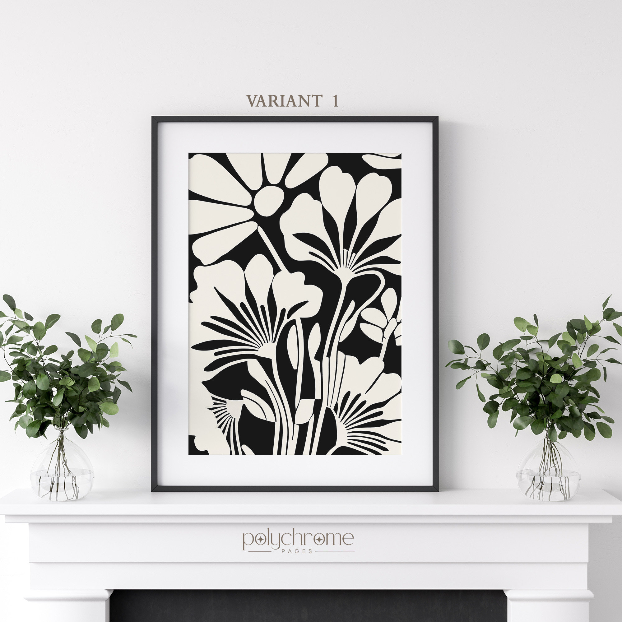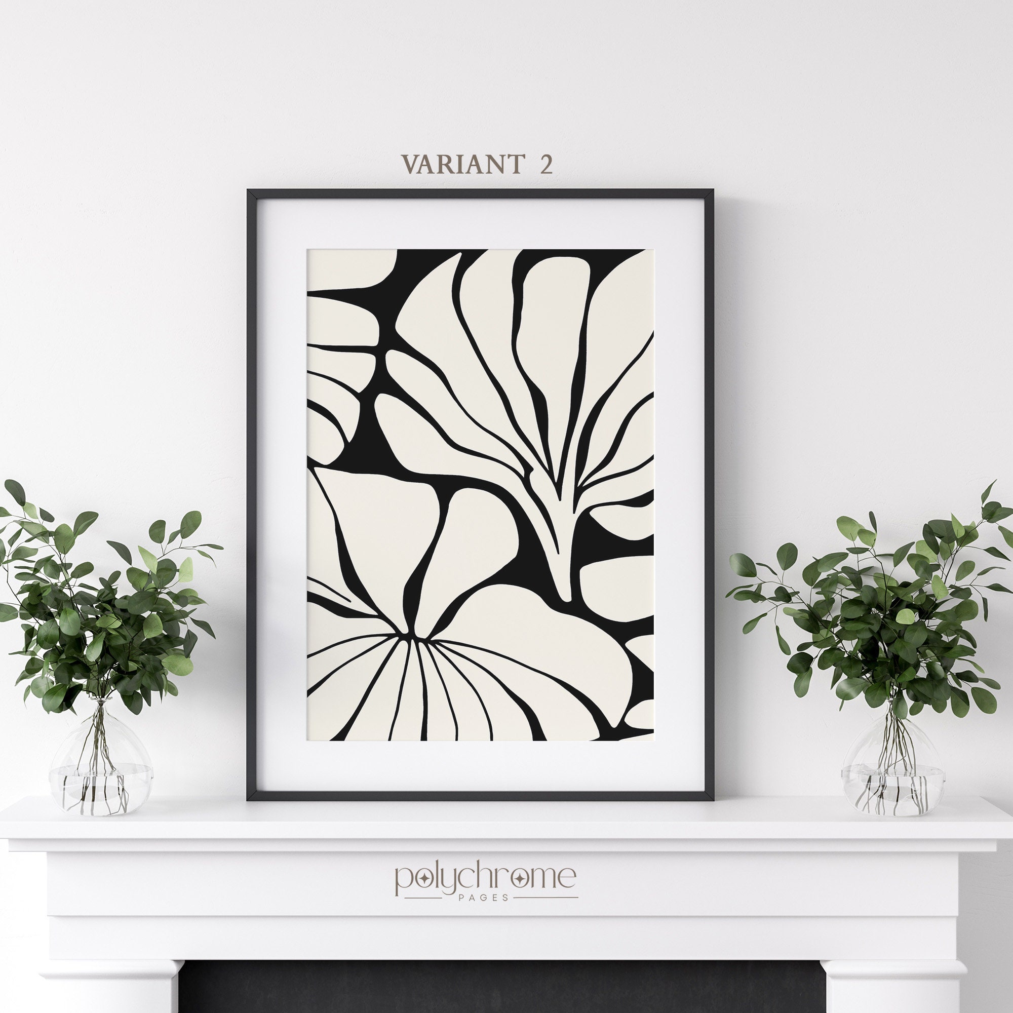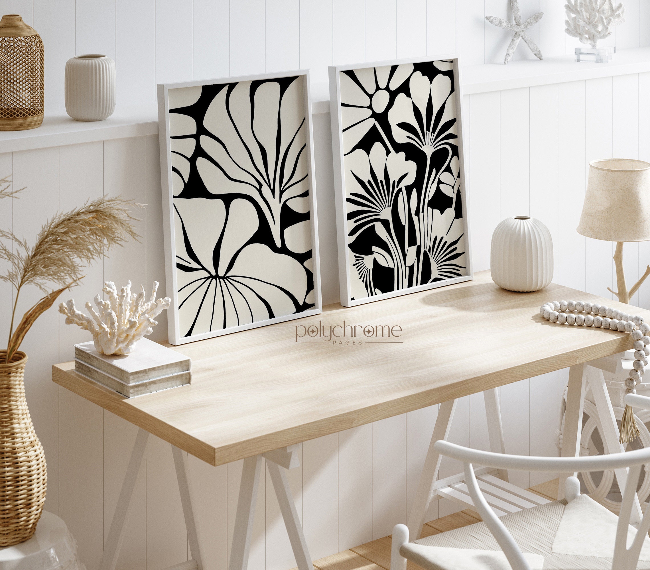 This minimalist black and white botanical illustration brings a calm, understated elegance to any space. The simple flower forms and clean lines work beautifully in living rooms, entryways, or bedrooms with a Scandinavian or neutral aesthetic. A lovely choice for anyone who appreciates abstract art with a softer, organic touch.