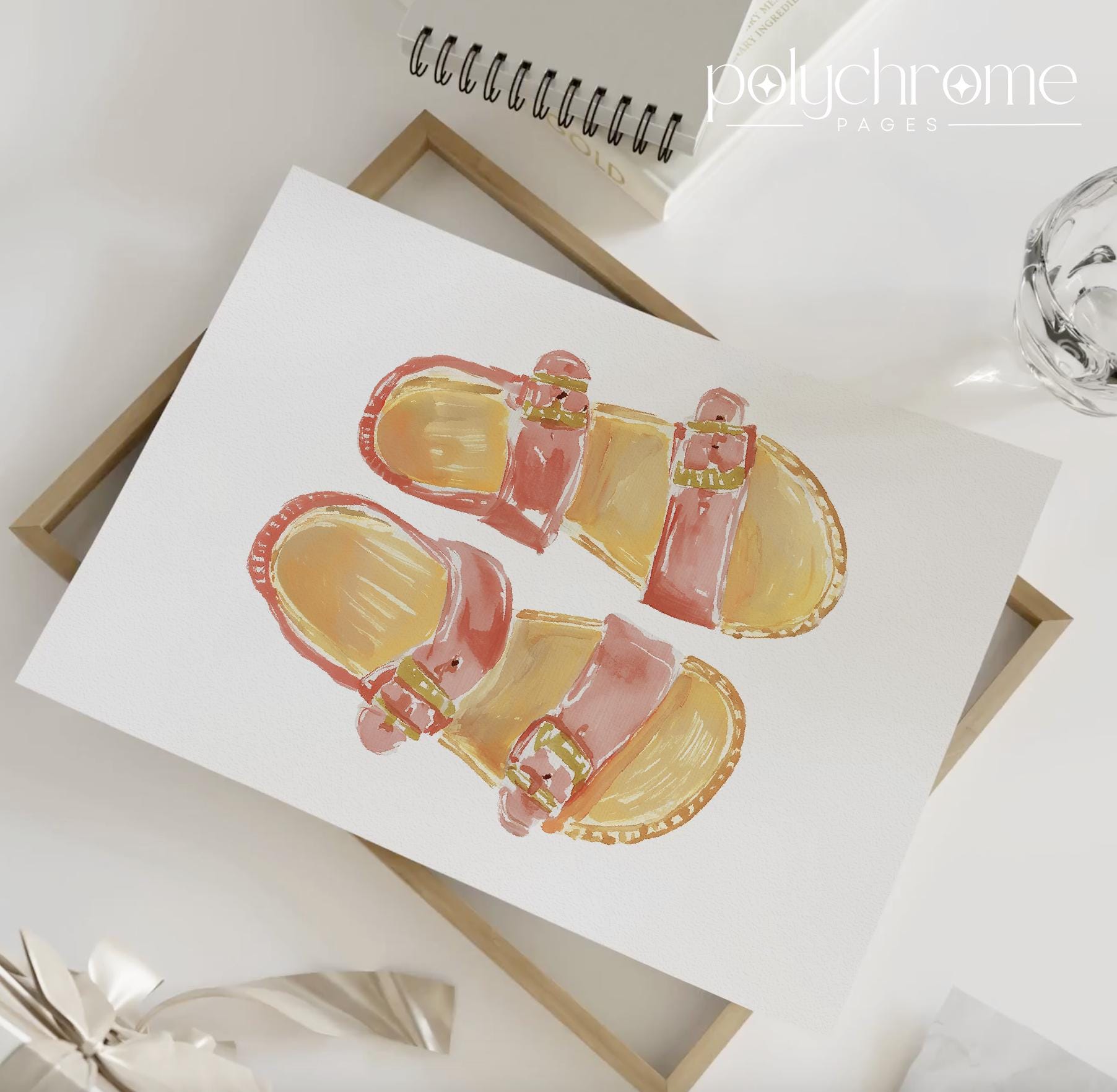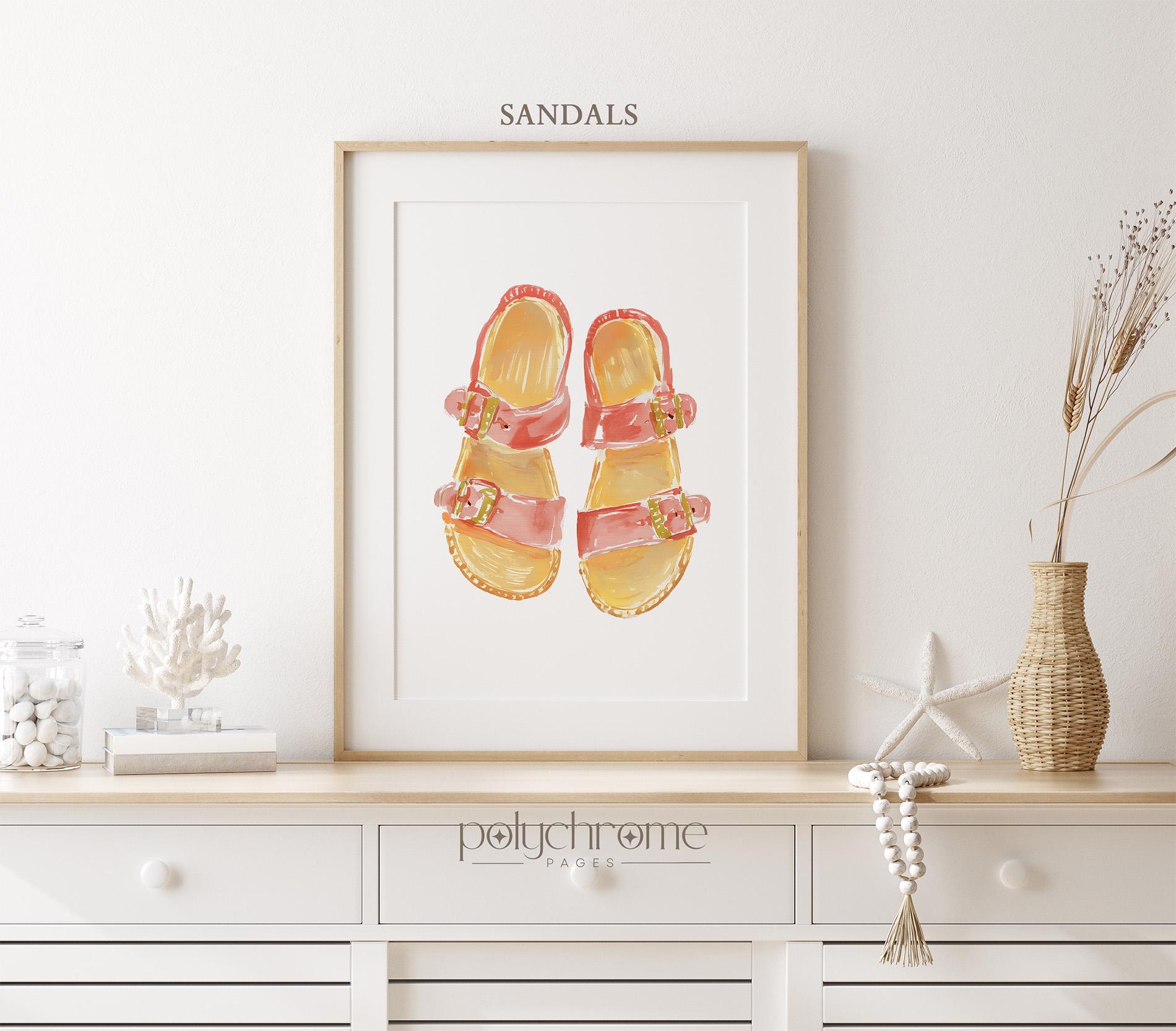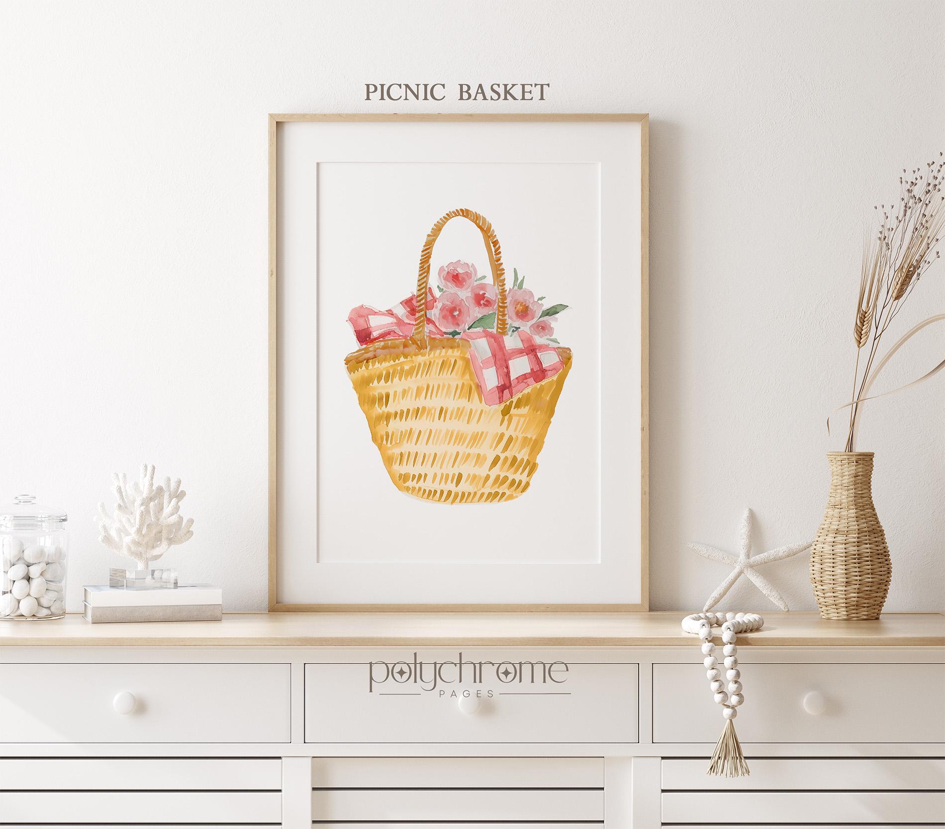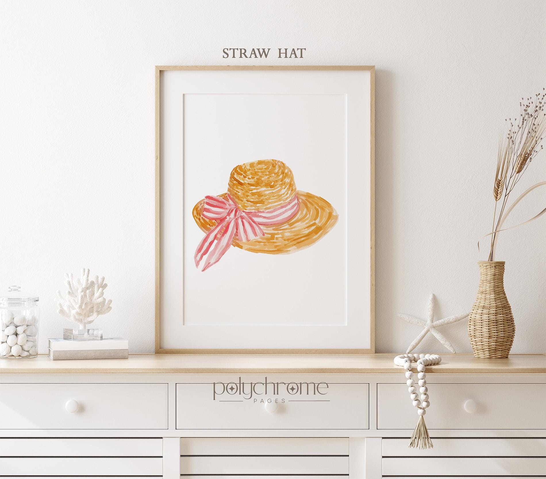 Bring summer to your walls with this set of three vacation-themed artworks featuring a straw hat with cute bow, picnic basket with flowers, and adorable sandals — perfect for your beach house, changing room, or vacation home. With their mix of pastel reds and coral pink tones, these playful yet stylish designs add a fresh touch to any space.