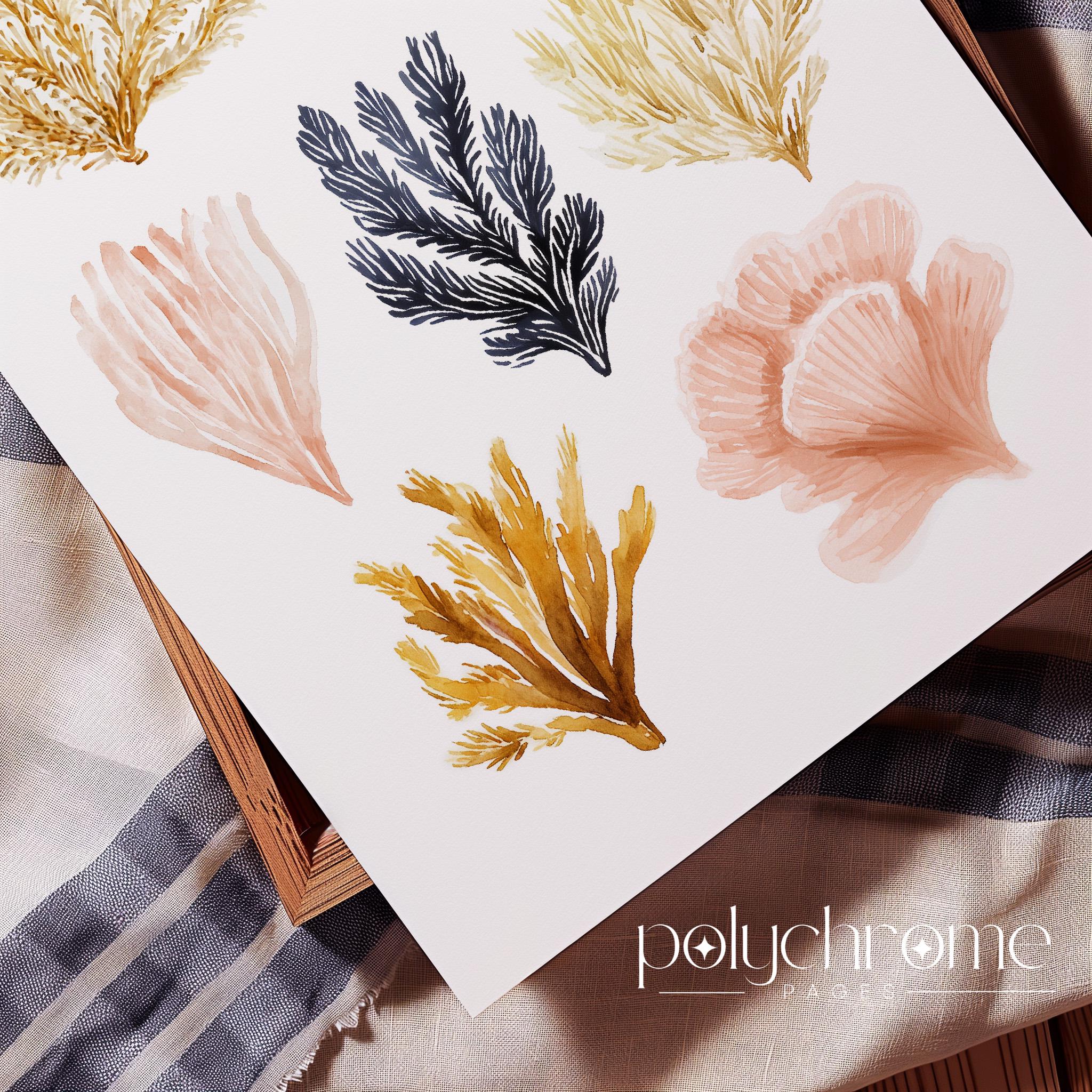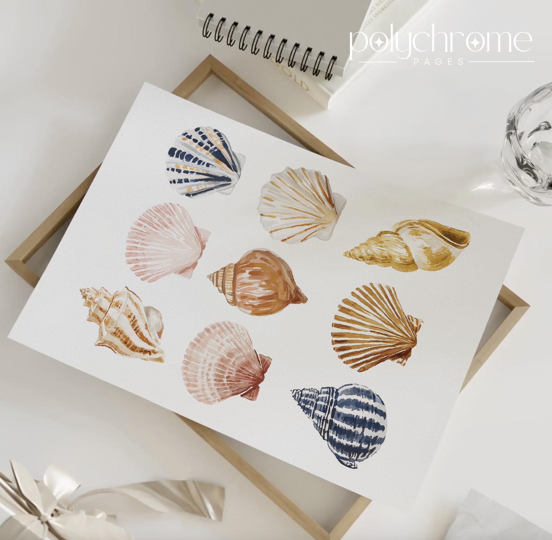 Seashells and Seaweed in Pastel Colors
