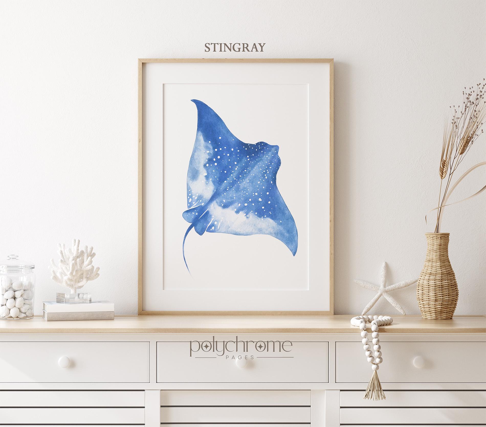Stingray, Fish and Jellyfish in Ocean Blue