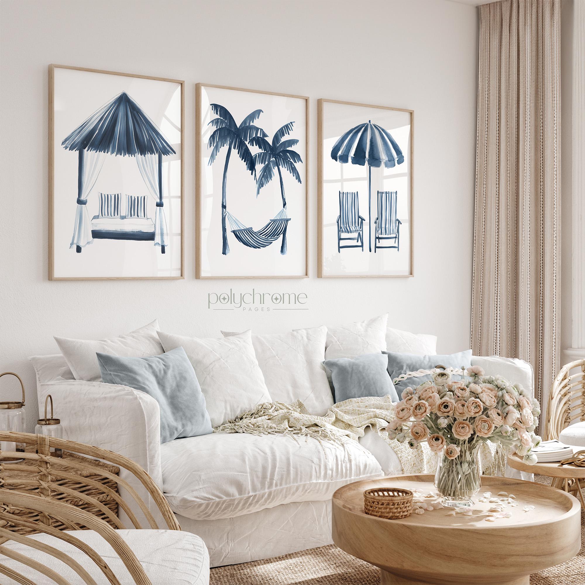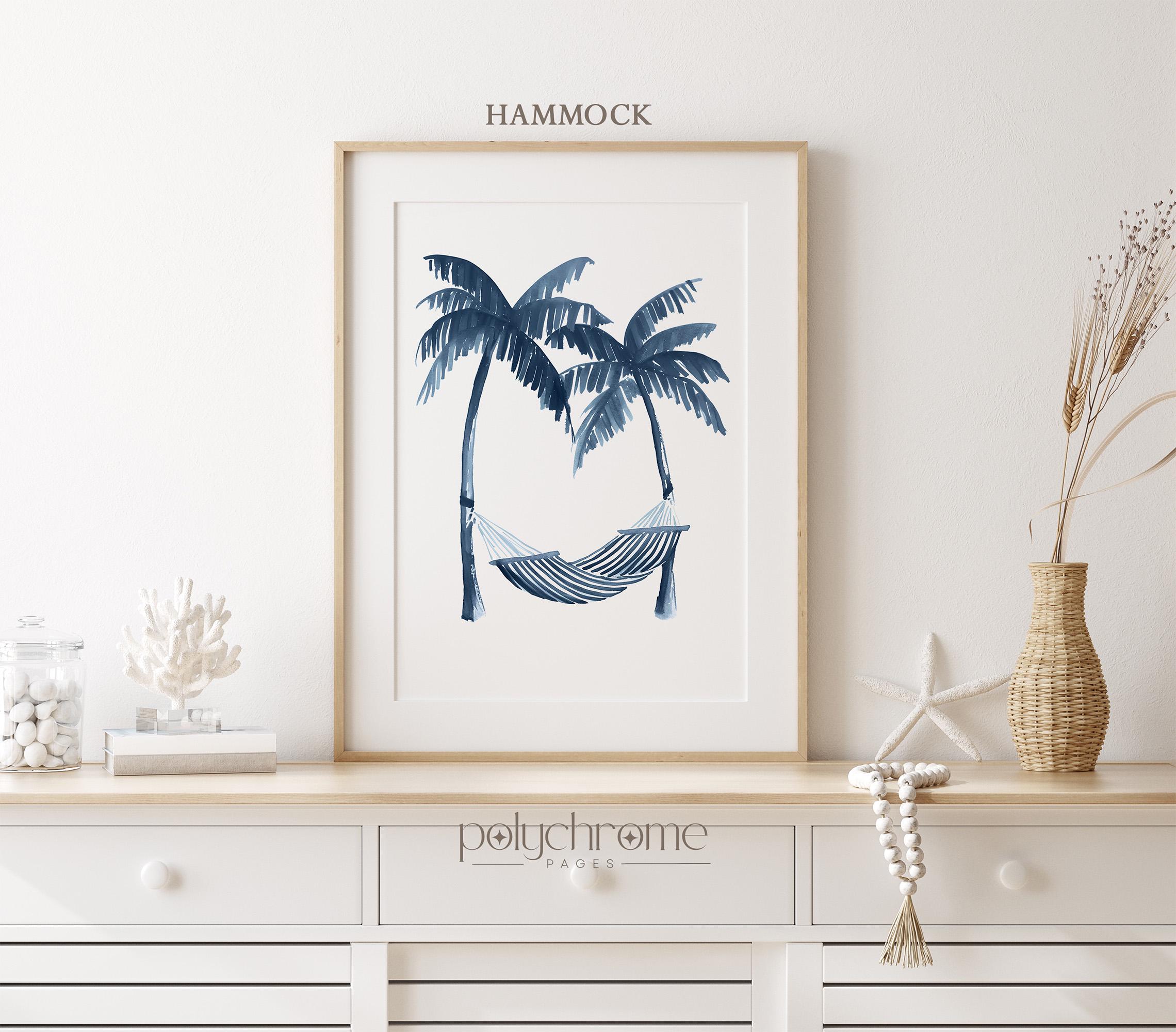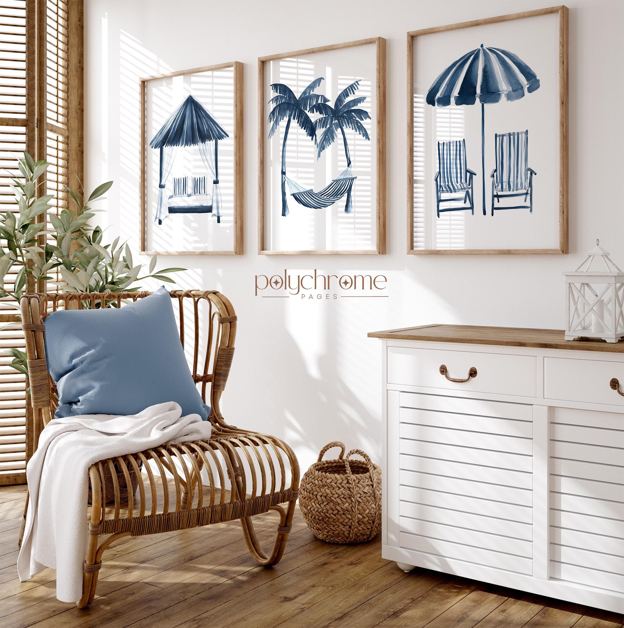 Add a coastal vibe to your space with these navy-toned artworks - striped hammock, beach umbrella, and cabana. They will be perfect fit for beach house, a poolside bathroom, or a relaxed bedroom. Bring the feeling of a summer right to your walls! Navy blue color palette makes them fit right into coastal or vacation home style!