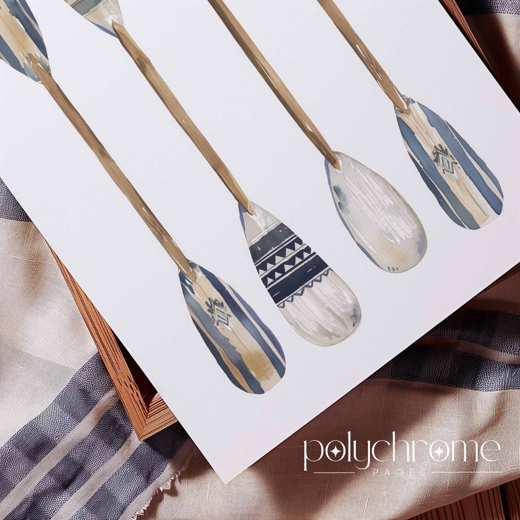 Vintage Oars and Kayaks in Navy Blue and Brown